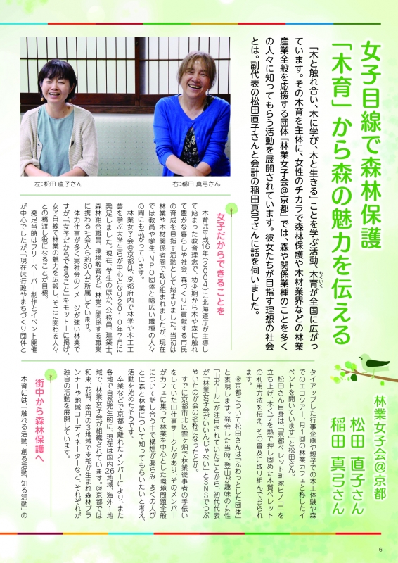 6面 女子目線で森林保護 「木育」から森の魅力を伝える