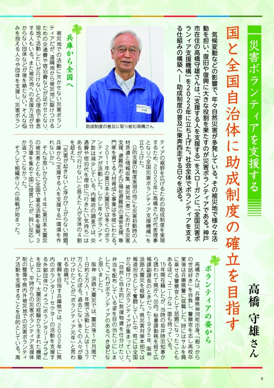 6面 災害ボランティアを支援する 国と全国自治体に助成制度の確立を目指す