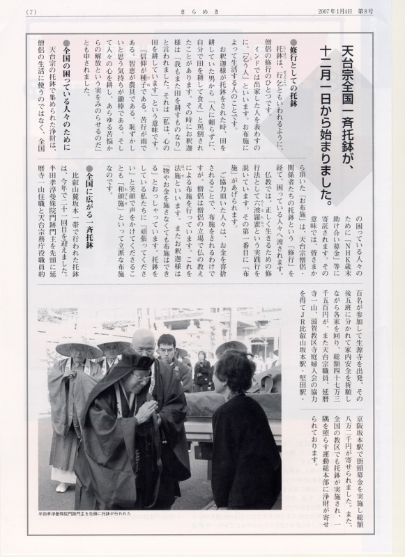 7面 天台宗全国一斉托鉢が、12月1日から始まりました。