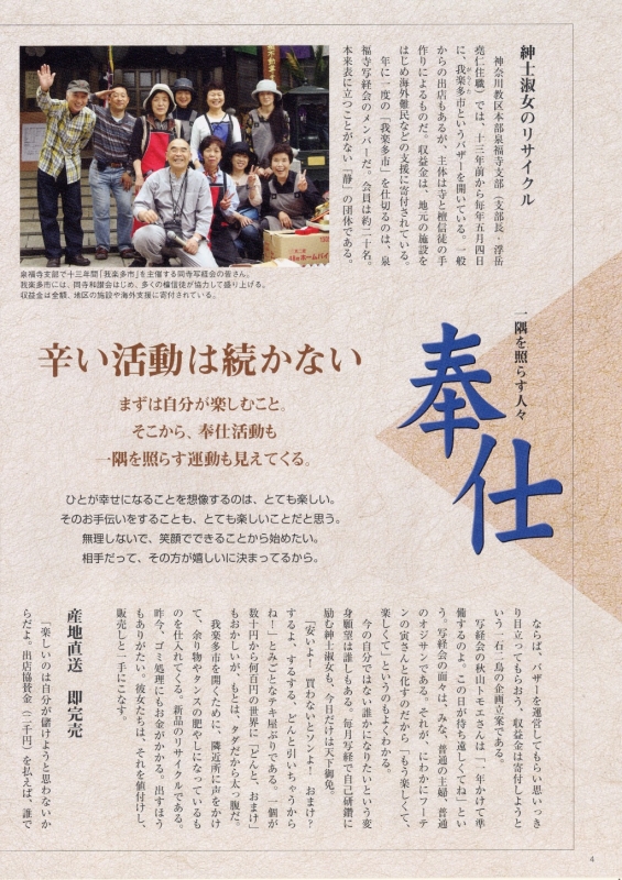 神奈川教区本部泉福寺支部(支部長・浮岳堯仁住職)では、13年前から毎年5月4日に、我楽多市というバザーを開いている。