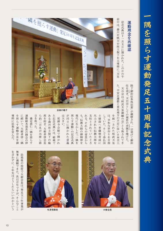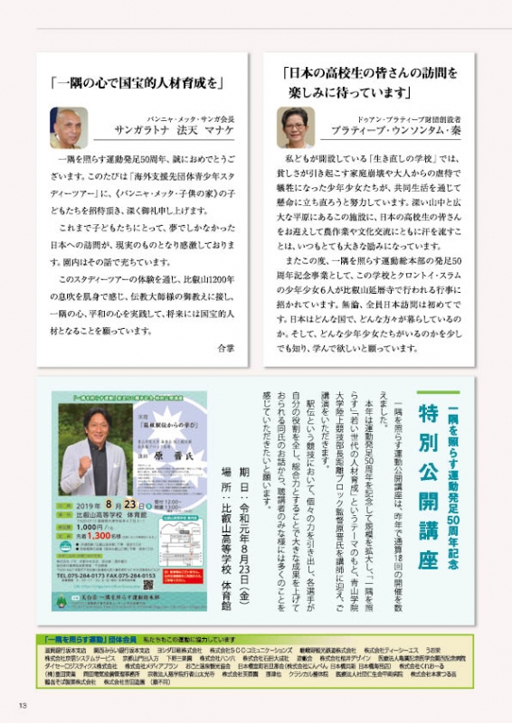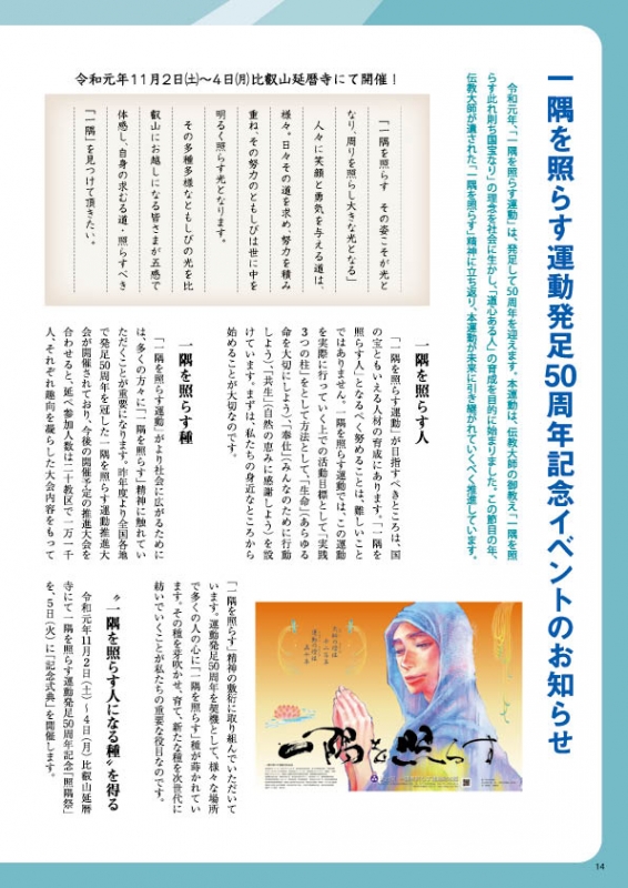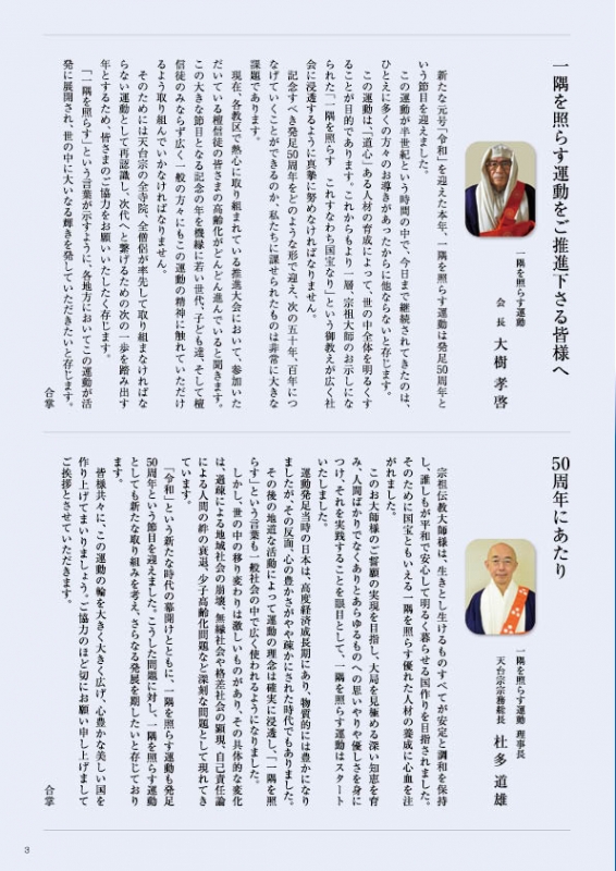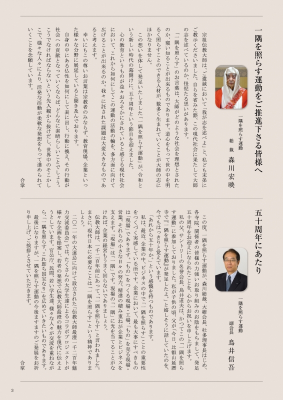 一隅を照らす運動をご推進下さる皆様へ・50周年にあたり