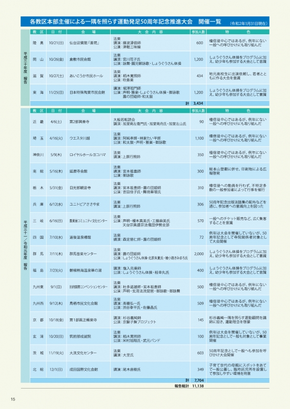 各教区本部主催による一隅を照らす運動発足50周年記念推進大会開催一覧