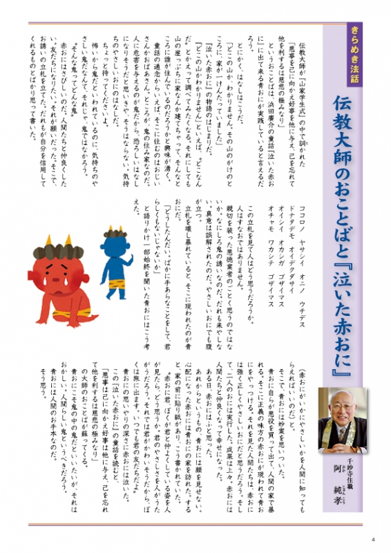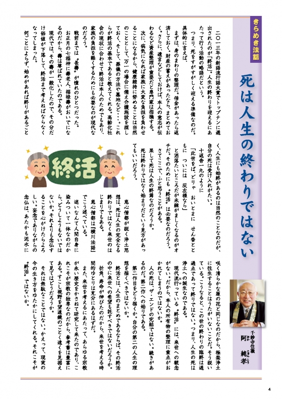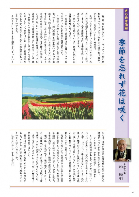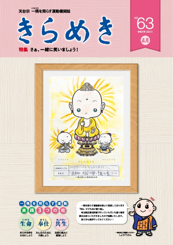 一隅を照らす運動広報機関誌『きらめき』第63号4頁「きらめき法話~死は人生の終わりではない~」において、数カ所の誤字がありました。ここに深くお詫びして訂正申し上げます。