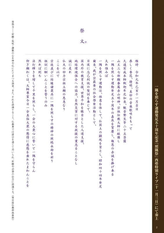 一隅を照らす運動発足50周年記念「照隅祭」西塔特別ライブ(11月3日)にて奏上
