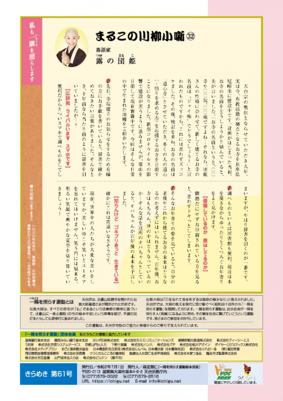 きらめき 第59・60 一隅を照らす運動発足50周年合併号 2020/03/01発行