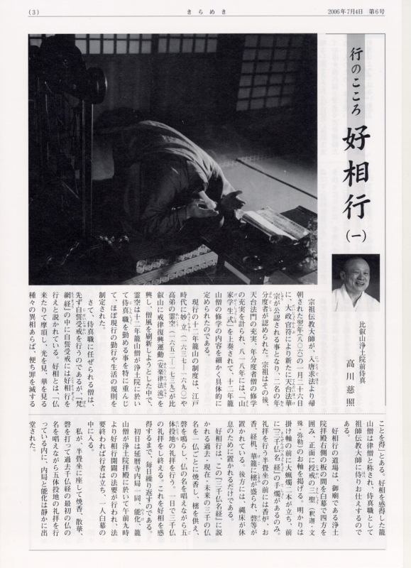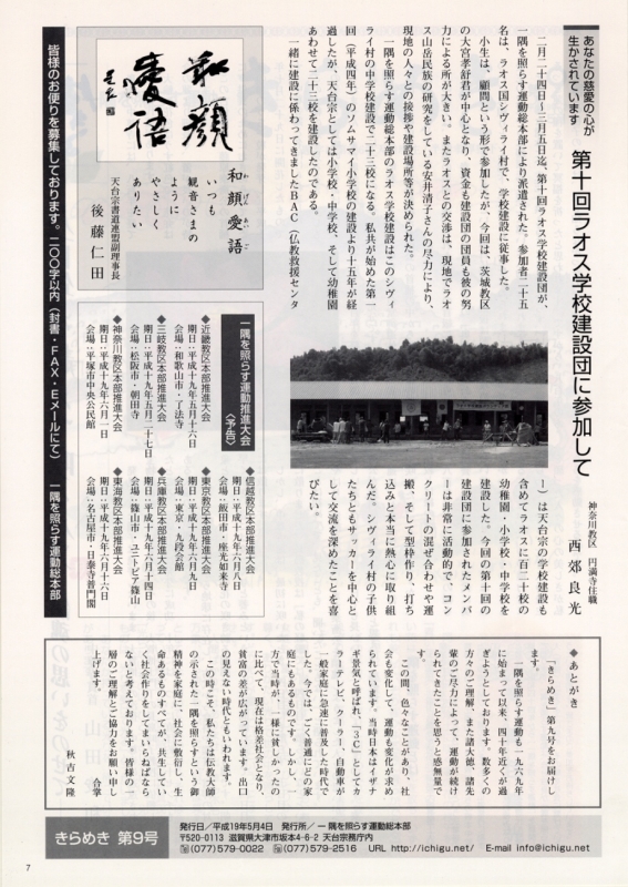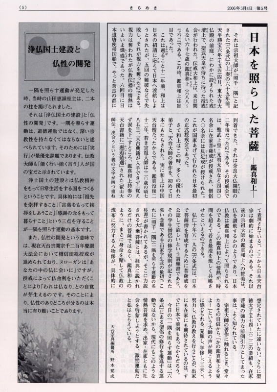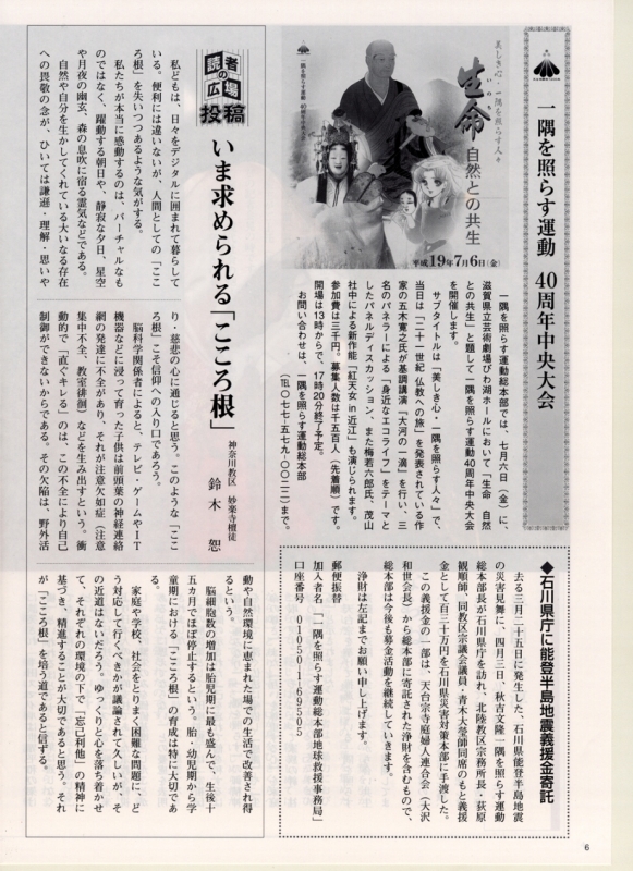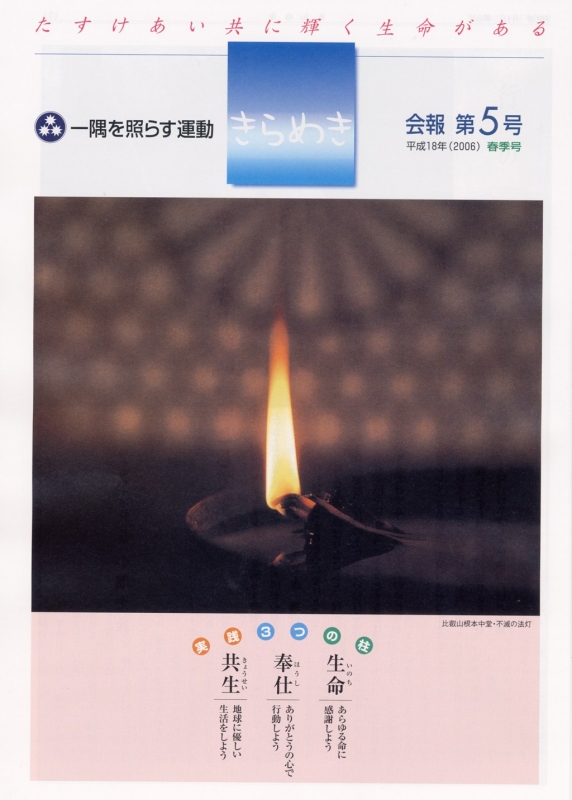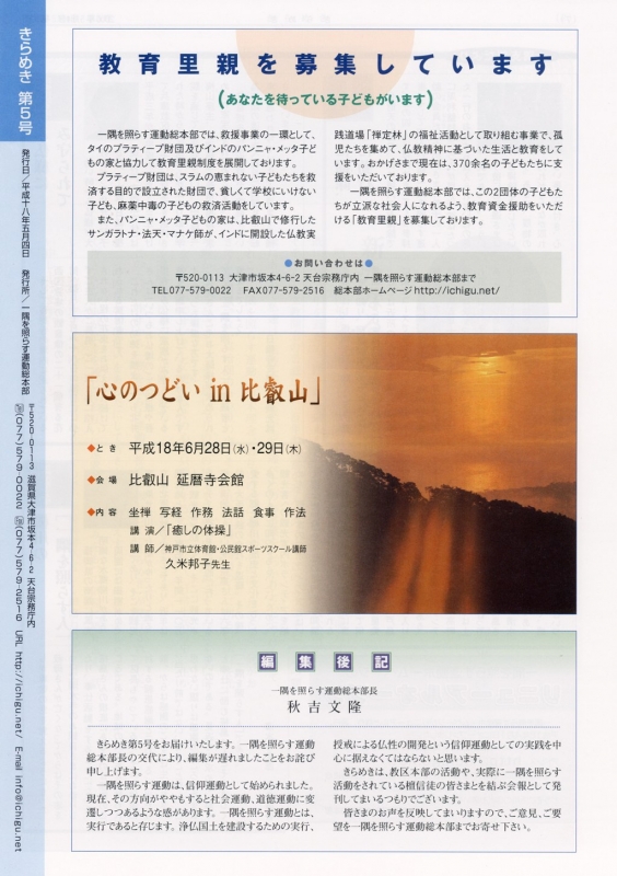 ~教育里親を募集しています~ 一隅を照らす運動総本部では教育里親制度を展開 | ~「心のつどいin比叡山」~ とき:平成18年6月28日(水)・29日(木)| 【編集後記】 一隅を照らす運動総本部長 秋吉文隆