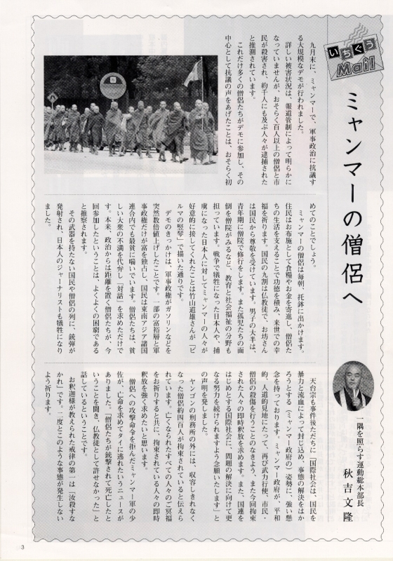 ~12月1日は天台宗全国一斉托鉢の日~ 「慈愛の心で助け合い」をスローガンに | ~ジャワ島中部地震緊急支援報告~ 7月7日現在で10,047,396円の支援金が寄託されました。 | 【編集後記】 一隅を照らす運動総本部長 秋吉文隆