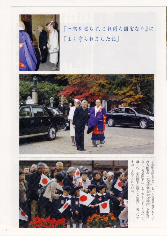 5面 両陛下、比叡山に行幸啓