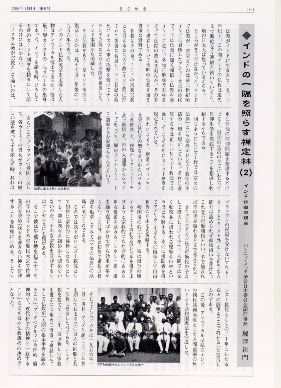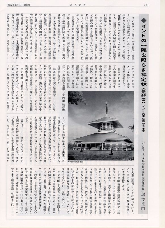 サンガ(略称)との出会いは私が延暦寺の留学僧としてインドに3年滞在したことに始まる。1969(昭和44)年4月私はインド新仏教徒の聖地ナグプールに入ってサンガの家に滞在