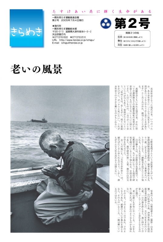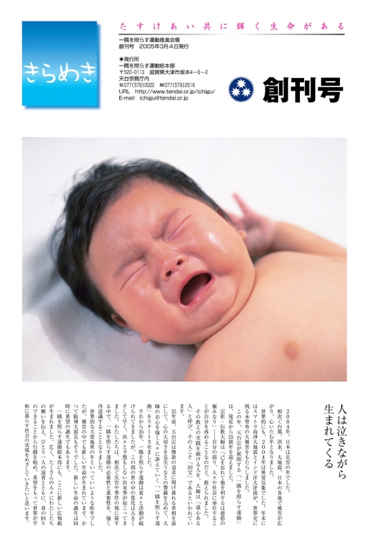 一隅を照らす運動総本部にも、ここに新しい広報紙が生まれました。広く、たくさんの人々にわたしたちの願いを伝え、ひとり一人の読者とともに、身の回りのできることから行動を始め、希望をもって世界が平和に暮らす社会の実現をめざしていきたいと思います。