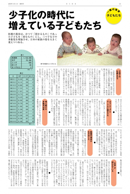 少子化の時代に増えている子どもたち~医療の進歩は、かつて「授かるもの」であった子どもを「産むもの」にし、三つ子などの多胎児を増加させ、日本の家族の姿を大きく変えつつある。