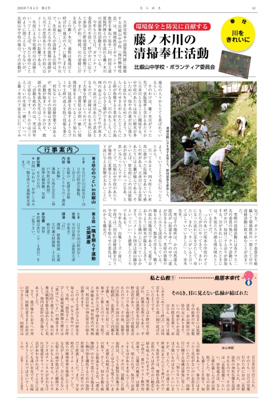 環境保全と防災に貢献する藤ノ木川の清掃奉仕活動~比叡山中学校・ボランティア委員会|【私と仏教(1)】そのとき、目に見えない仏縁が結ばれた~鳥居本幸代(京都ノートルダム女子大教授)