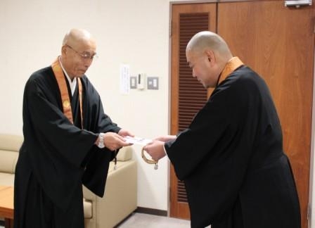 三千院門跡より東日本大震災義援金を地球救援事務局に寄託
