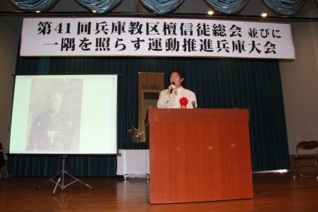 平成24年6月18日、兵庫教区本部(雲井明善教区本部長)では、一隅を照らす運動推進兵庫大会を神戸市のシーサイドホテル舞子ビラ神戸で開催した。今大会は、第43回檀信徒総会も一緒に行われ、約350名の参加者が集った。