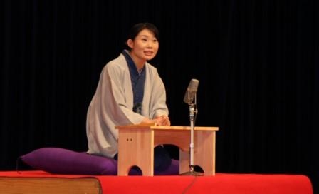 続いて講演では、女流落語家露の団姫(つゆのまるこ)氏と太神楽曲芸師の豊来家大治朗(ほうらいやだいじろう)氏による「笑顔満開寄席」が行われた。露の氏は古典落語と一隅を照らす精神をわかりやすく盛り込んだ創作落語『一隅を照らす落語』を披露し、露の氏のユーモアたっぷりでテンポのいい語り口に会場は笑顔が溢れていた。また豊来屋氏は『大神楽』を披露し、普段なかなか見ることのない曲芸の迫力に会場は大いに盛り上がった。