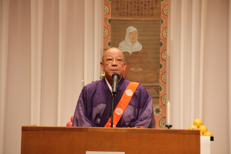 はじめに、雲井教区本部長を御導師に法楽が行われ、雲井教区本部長、続けて、横山照泰一隅を照らす運動総本部長より祝辞が述べられた。