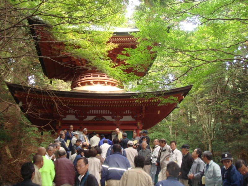 つづいて、横川中堂をはじめ各諸堂や境内地を参加者全員で清掃した。その後、布教師会幹事が、横川中堂、元三大師堂、恵心堂、根本如法塔をそれぞれ説明し、参拝した。