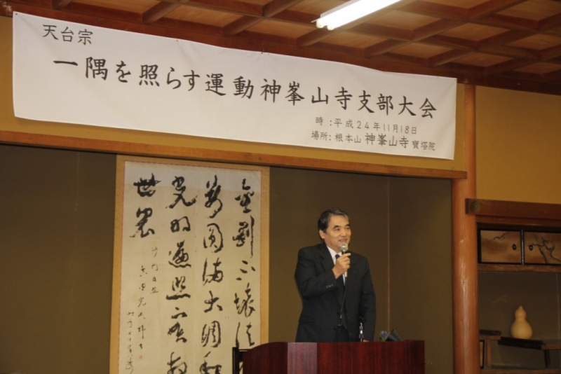 近畿教区本部(高岡保博教区本部長)では、平成24年11月18日に高槻市の神峯山寺(近藤眞道支部長)を会場に、一隅を照らす運動近畿大会を開催し、檀信徒約120名が参加した。