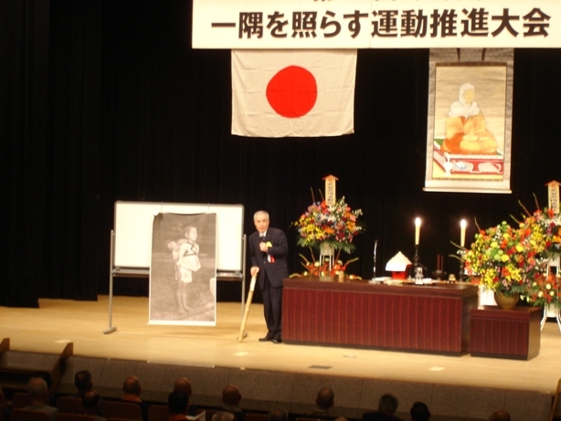 第2部では、作家の青木新門氏が「いのちのバトンタッチ」と題し講演。青木氏は、自分の近親者が亡くなった時のことを例に挙げて、『先に死ぬ人がありがとうと言えば、残った人もありがとうと応える。そうやって優しい言葉を掛けることが、一隅を照らすことなのではないでしょうか』と、大変分かりやすく話され、参加者はじっくりと講演を聞き入っていた。