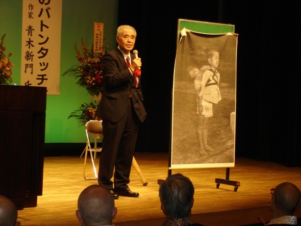 第二部では、作家・青木新門氏による「いのちのバトンタッチ」と題した講演があり、青木氏のわかりやすいお話しに参加者は聞き入っていた。
