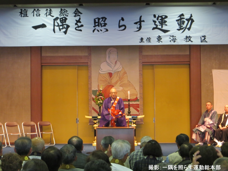平成29年6月17日、東海教区本部(柴田真成教区本部長)では、愛知県名古屋市の覚王山日泰寺普門閣を会場に、東海教区檀信徒会総会並びに一隅を照らす運動東海教区推進大会を開催し、住職・寺族・檀信徒ら約200名の参加者が集まった。
