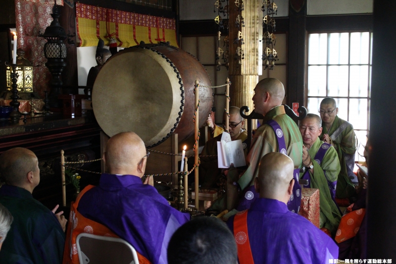 第1部では、はじめに宗休寺住職佐藤舜海師導師のもと本堂にて法楽が執り行われた。法要後に佐藤住職から挨拶があり、引き続き横山照泰一隅を照らす運動総本部長より本運動の主旨について話がなされた。