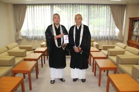 三千院チャリティー墨蹟展の収益金を地球救援事務局に寄託