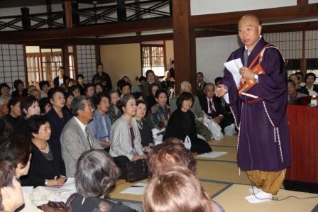 第二部では、天台宗勧学である多田孝正命徳寺住職を講師に「いろはうたのこころ」と題した講演があった。