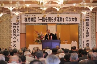 群馬教区本部(藤井祐順教区本部長)では、 3月3日・4日の両日、渋川市伊香保温泉の「ホテル木暮」を会場に、平成21年度「一隅を照らす運動」群馬教区推進大会を開催、住職・檀信徒合わせて520名が参加した。