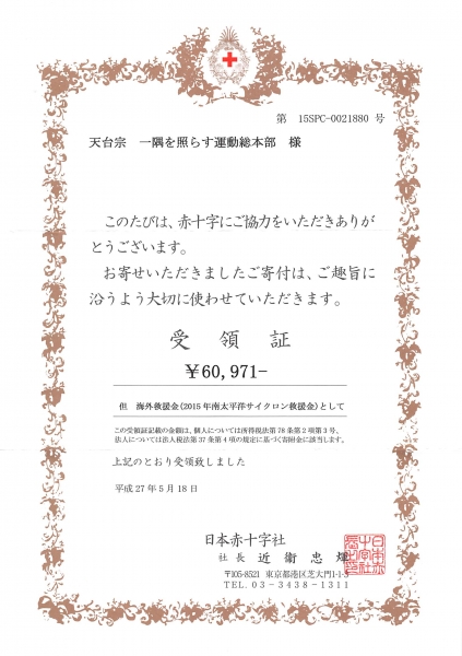 受領証をいただきました。(バヌアツサイクロン災害義援金)