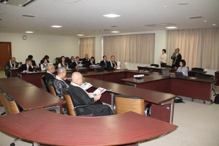 今回の報告会には、天台宗務庁役職員を含め、救援募金にご協力頂いた京都教区仏青代表、天台宗寺庭婦人連合会代表など約30名が参加した。