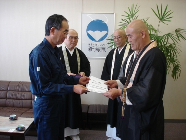 一隅を照らす運動総本部では、新潟県中越沖地震被災者への支援活動に役立てていただきたく、平成19年7月23日、秋吉文隆一隅を照らす運動総本部長が新潟県庁の災害対策本部を訪れ、信越教区宗務所長・小山健英師、同教区宗議会議員・小林玄海師、同教区新潟部主事・真明成光師同席のもと、平成19年新潟県中越沖地震義援金として100万円を新潟県災害対策本部担当者に手渡した。