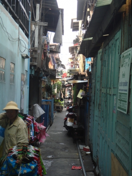 SVAでは、秋吉総本部長からプロマー事務局長に支援金30万円の目録を手渡した後、日本人スタッフからパソコンを使って現状の活動報告を受け、クロントイスラムを視察した。