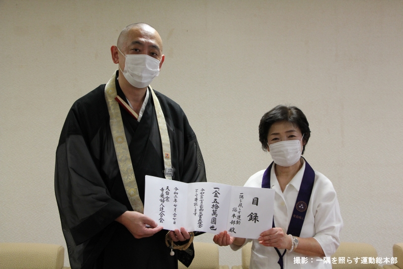 天台宗寺庭婦人連合会が義援金を寄託