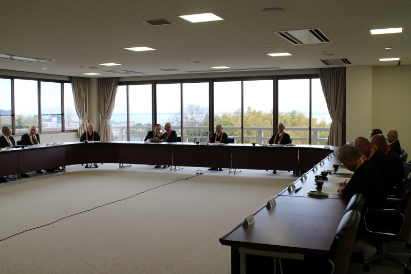 今回の理事会では、任期満了等による役員改選があり顧問、理事などの新任、再任が承認され、会長であられた森川宏映探題大僧正が、天台座主にご上任になられたので、大樹孝啓探題大僧正(兵庫教区圓教寺住職)が全会一致で推薦され、会長にご就任いただくことになった。