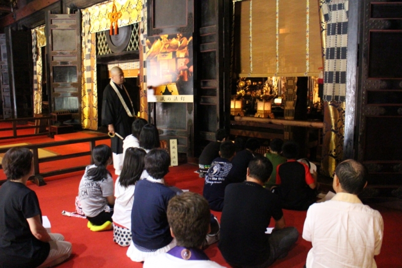 先ず開講式では、一隅を照らす運動紹介のDVD放映、福惠善高一隅を照らす運動総本部長導師による「おつとめ」があり、次にオリエンテーションや坐禅止観などの説明があった。