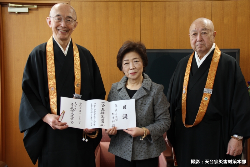 天台宗寺庭婦人連合会が義援金を寄託