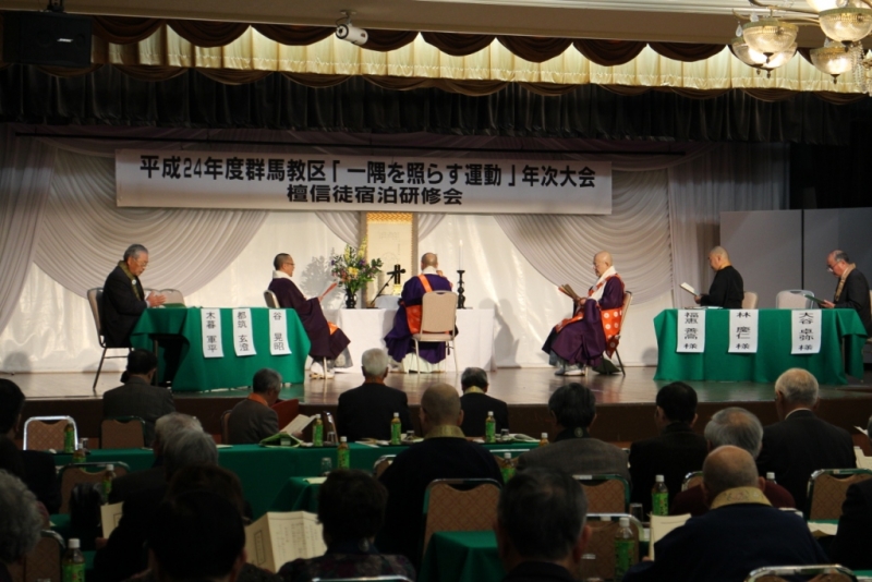群馬教区本部(谷晃昭教区本部長)では、平成25年2月28日に渋川市伊香保町のホテル天坊を会場に、一隅を照らす運動群馬大会を開催し、檀信徒約500名が参加した。