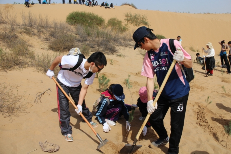 第11回のツアー参加者20名は、中華人民共和国の首都北京から西に1,000㎞の内モンゴル自治区ウーシン旗での植林活動を行い、現地の内モンゴル師範大学の大学生等との交流を行った。