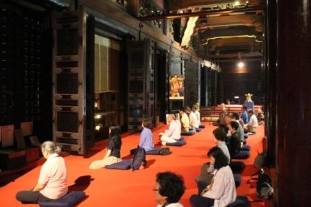 開講式では、横山照泰一隅を照らす運動総本部長導師による「おつとめ」があり、その後、坐禅止観などの説明があった。