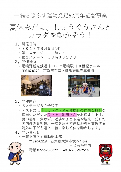一隅を照らす運動発足50周年記念事業として『しょうぐうさん体操』イベントを開催いたします。