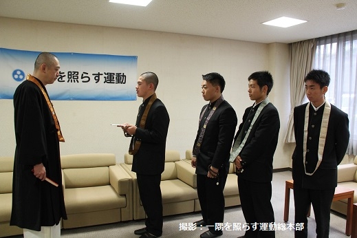 比叡山高校宗内生が托鉢浄財を寄託