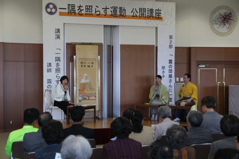 一隅を照らす運動総本部では、公開講座を平成23年10月31日に天台宗務庁で開催した。第11回となるこの度の公開講座では、演題「一隅を照らす落語」と題し、上方落語の露の団姫氏を迎え、ひろく一般から約250名の参加者が集まった。