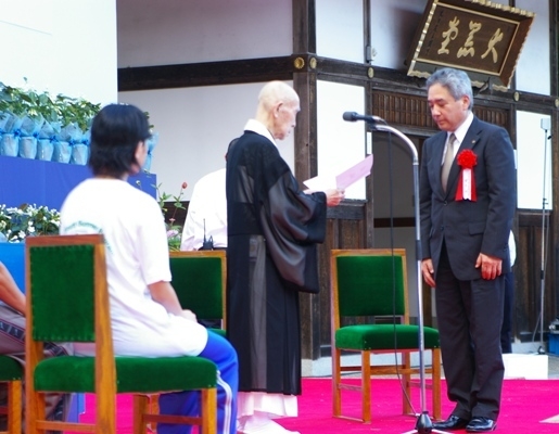 先ず開講式では、一隅を照らす運動紹介のDVD放映、秋吉文隆一隅を照らす運動総本部長導師による「おつとめ」があり、次にオリエンテーションや坐禅止観などの説明があった。