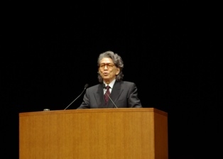 五木氏は「大河の一滴」と題し講演。「山川草木悉有仏性という思想、素朴な生命観に戻って、すべてのものに仏性があるという考え方に立つ時、私たちは初めて自然と共生という問題に正面から向き合えるのではないか」と、仏教の考えから新しい自然環境保護の取り組みが生まれてくる可能性を語った。