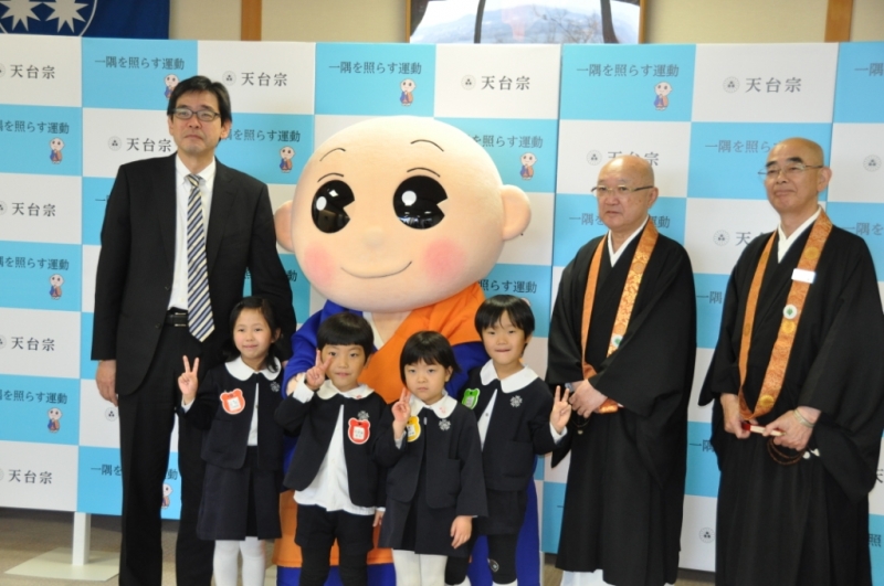 当日、NHK大津放送局から辻田和則局長が来庁し、一隅を照らす運動木ノ下寂俊理事長、同運動武覚超副理事長から目録が手渡された。