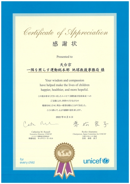 ユニセフ協会より感謝状をいただきました!