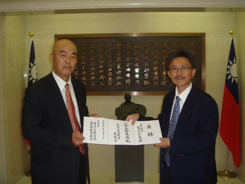 平成21年9月3日、一隅を照らす運動総本部では、8月7日から8日にかけ台湾を襲った台風8号の被害に対して支援金50万円を支援した。支援先は、台北駐日経済文化代表処(東京都港区)で秋吉文隆総本部長から薛銀樹(セツギンジュ)文化組秘書に手渡された。