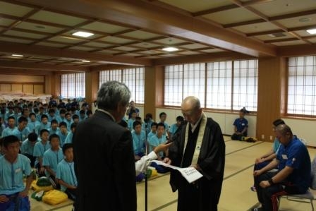 寄託式では、天台青少年比叡山の集い参加者の代表より森川宏映一隅を照らす運動副会長へ目録が手渡され、引き続き森川副会長から早水研公益財団法人日本ユニセフ協会専務理事に目録が手渡された。